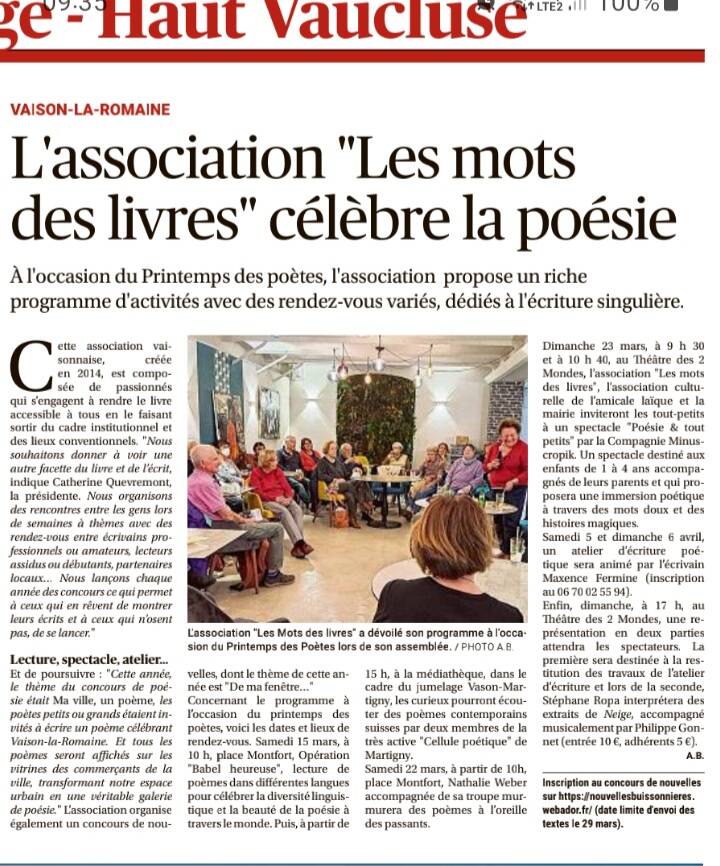 Vous qui avez participé et fait entendre votre voix en écrivant un poème célébrant notre ville Vaison la Romaine. Ils ont été affichés à la médiathèque.